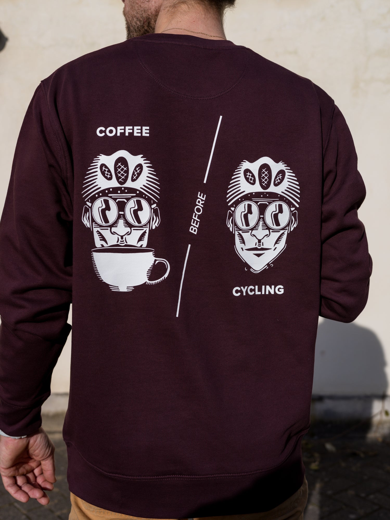 Back because of popular demand, our Coffee Before Cycling sweater with our original spaceman designed by Sue van Gageldonk and printed by hand by Atelier Haven. As usual, offering you the best quality 350g/m2 soft organic cotton to keep you cosy all winter, spring, and fall.